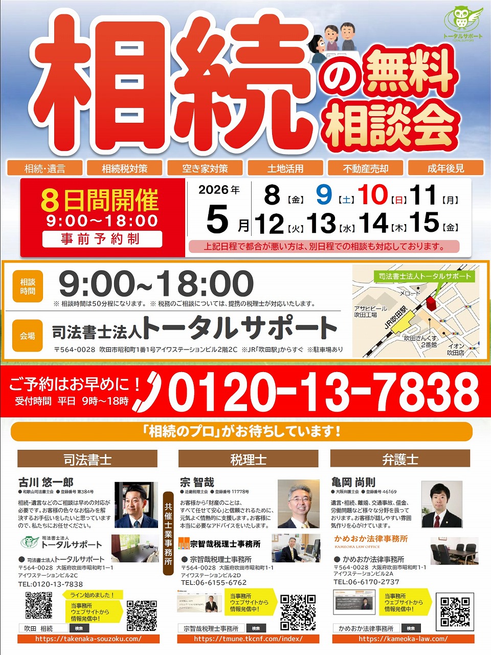 5譛8譌・ス15譌・縺セ縺ァ螟ァ髦ェ譛ャ遉セ縺ァ逶ク邯壹ョ辟。譁咏嶌隲莨壹r髢句ぎ閾エ縺励∪縺吶