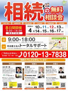 4月10日(金)~17日(金)にJR吹田駅近くの大阪本社で相続の無料相談会を開催致します。